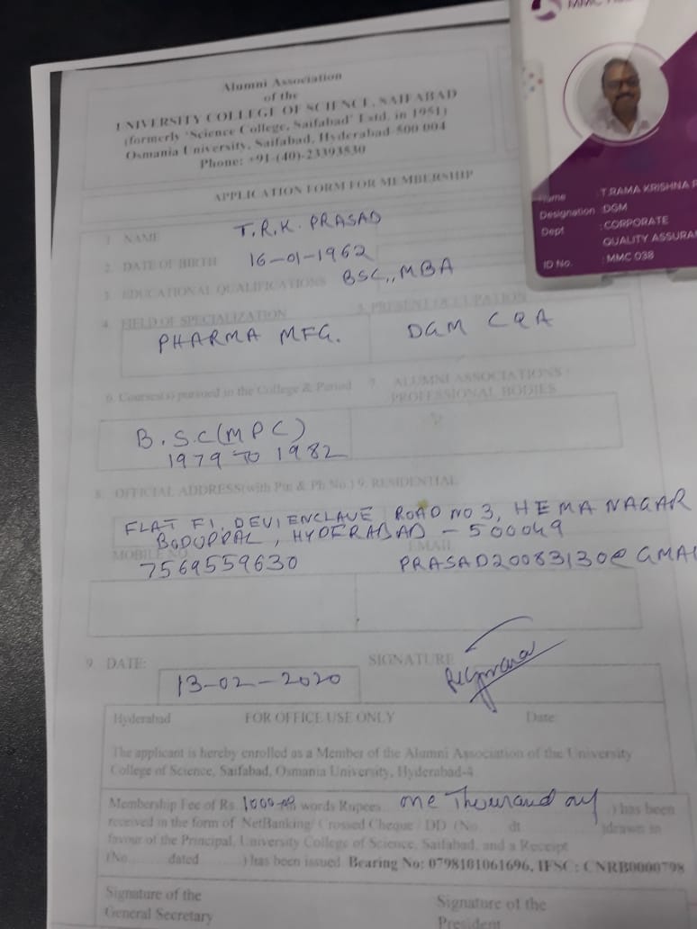 RESIDENCE H.O.D, M.N.R.PH.T.E.C, BACHUPALLY, R.R.DIST |